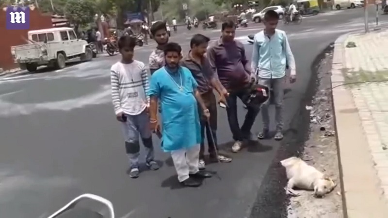 "Kaki anjing itu tertanam di bawah tar. Pekerjanya enggan memecahkan jalan itu untuk mengeluarkan anjing itu yang kemudiannya mati," kata Virendra Singh, penduduk di kawasan tersebut.