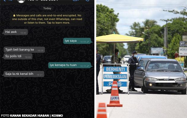 "Hai awak, tengah beli barang ke? Saya polis tadi. Saja la, nak kenal boleh?" mesej anggota berkenaan.